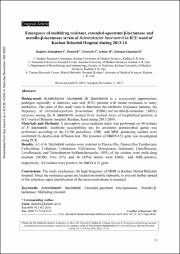 ظهور اسینتوباکتر بومانی مقاوم به چند دارو، مولد بتالاکتاماز وسیع الطیف و متالوبتالاکتاماز در بخش مراقبت های ویژه بیمارستان شهید بهشتی کاشان طی سال های 93-1392