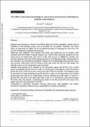 مواد و روش ها: کارآزمایی بالینی حاضر روی 60 بیمار مبتلا به اپیستاکسی راجعه مراجعه کننده به بیمارستان متینی شهر کاشان انجام شد. بیماران به صورت تصادفی در گروه های مداخله (30 نفر) و کنترل (30 نفر) قرار گرفتند. هر دو گروه درمان های معمول را به صورت یکنواخت دریافت کرده و آموزش از طریق بسته آموزشی که شامل گفتگوی چهره به چهره به مدت 20 دقیقه و در اختیار قرار دادن پمفلت آموزشی بود به گروه مداخله داده شد. پس از گذشت یک ماه از آموزش در پایان هفته چهارم و هشتم و دوازدهم میزان شدت و عود خونریزی از بینی مورد بررسی قرار گرفت.