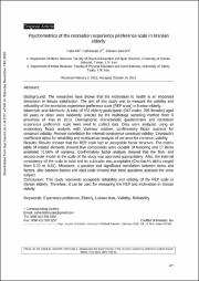نتیجه گیری: تحقیق حاضر بیانگر روایی و پایایی قابل قبول نسخه فارسی مقیاس ارجحیت تجربه تفریحی در سالمندان ایرانی بود. بنابراین، از این مقیاس میتوان برای اندازهگیری ارجحیت تجربه تفریحی در سالمندان ایرانی استفاده کرد.