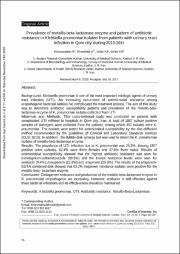 بررسی فراوانی آنزیم متالوبتالاکتاماز و الگوی مقاومت آنتی بیوتیکی در سویه های کلبسیلا پنومونیه جدا شده از بیماران مبتلا به عفونت ادراری در شهر قم طی سال های 1392 تا 1393