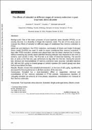 مواد و روش ها: القا PTSDبا استفاده از مدل تلفیقی تک استرس طولانی مدت و شوک (S+SPS) صورت گرفت. 7 روز بعداز القا بیماری حیوانات برای ارزیابی خاموشی حافظه ترس شرطی شده (تست اول)، به مدت 9 دقیقه بدون دریافت شوک در دستگاه ترس شرطی قرار گرفتند. میزان بی حرکتی حیوان در 3 بازه زمانی 3 دقیقه ای ثبت شد. تست اول، شاخصی از فرایند اکتساب خاموشی است. تست دوم به فاصله یک روز پس از تست اول و به همان صورت انجام شد؛ در طی این تست حافظه خاموشی به خاطرآوره شده و مجددا تثبیت می گردد. تزریق استرادیول 90، 180و 360 mg/kgدر گروه های تیمار و یا حلال (در گروه کنترل) نیم ساعت قبل از تست ها انجام می شد.