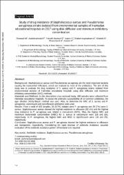 بررسی مقاومت دارویی سویه های استافیلوکوکوس اورئوس و سودوموناس آئروژینوزا جدا شده از نمونه های محیطی بیمارستان های آموزشی شهر همدان در سال 1395 با روش های دیسک دیفیوژن و حداقل غلظت بازدارنده