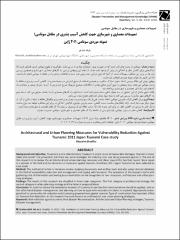 نتیجه گیری: برای کاهش اثرات تخریبی سونامی، اتخاذ مباحث فنی از یک سو و مدیریت بحران و برنامه ریزی چگونگی مقابله با حوادث ناشی از آن از سوی دیگر مورد نیاز است. ارائه راهکارهای مناسب، سبب کاهش آسیب پذیری جوامع و افزایش آمادگی در برابر این مخاطره خواهد شد. نوع ساخت و ساز تاثیر به سزایی در کاهش خطر در برابر این پدیده دارد لذا دراین مقاله تمرکز بیشتری بر روی راه کار های معماری و شهرسازی شده است.