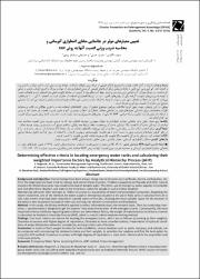 یافته ها : پنج معیار اصلی برای جانمایی مخازن اضطراری به عنوان مهمترین معیارها انتخاب شد که به ترتیب ضریب وزنی اهمیت محاسبه شده عبارتند از: نزدیکی به مراکز با اهمیت بالا، نزدیکی به مراکز پرجمعیت، حفظ شرایط هیدرولیکی شبکهی توزیع آب، دردسترس بودن، هزینه تملک.
