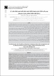 یافته ها: نتایج حاصل از یافته های تحقیق حاکی از آن است که میزان میانگین مشاهده شده ( 11.62) آزمون تی بالاتر از میانگین مورد انتظار (10) است، به عبارتی نقش مشارکت شهروندان بهشهری در بهبود عملکرد مدیریت بحران این تاثیرگذار بوده است، که بیشترین نقش موثر در بهبود عملکرد مدیریت بحران مربوط به شاخص رضایت ازعملکرد شهرداری و سازمان های محلی و مدیریت بحران (17.34) و بسترهای زیرساختی(15.88) است.