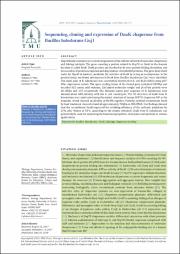 اعضای خانواده پروتئینهای شوک حرارتی ۷۰ (Hsp۷۰) از اجزای مرکزی شبکه سلولی چپرونهای مولکولی و کاتالیزکنندههای تاخوردگی هستند. ژن کدکننده یک پروتئین مربوط به Hsp۷۰ یا DnaK در حوزه باکتریها dnaK نامیده میشود. پروتئینهای DnaK در تاخوردگی ازنو پروتئین، تشکیل و تفکیک کمپلکسهای پروتئینی و تخریب پروتئینهای بدتاخورده دخیل هستند. ژن dnaJ که کدکننده Hsp۴۰ در باکتریها است، با نقش کوچپرونی تنظیمکننده فعالیتهای DnaK است. در این مطالعه، DnaK از باکتری باسیلوس هالودورانس Guj۱ (Bacillus halodurans Guj۱) را شناسایی، کلون و بیان شد. ژن dnaK از باسیلوس هالودورانس Guj۱، با استفاده از سیستم بیانیpET-۲۸a+ بهطور موفقیتآمیز در اشریشیا کلی سویه BL۲۱ (DE۳) بیان شد. قالب صحیح خوانش ژن کلونشده، دارای ۱۸۳۹جفتباز بوده که کدکننده ۶۱۲ باقیمانده آمینواسیدی است. وزن مولکولی و pI محاسبهشده پروتئین بهترتیب ۱۸/۶۶کیلودالتون و ۵۵/۴ است. توالی آمینواسیدی بهدستآمده باسیلوس هالودورانس Guj۱ حدود ۶۰% با همتای خود در E. coli یکسانی دارد. ساختار سهبعدی DnaK در باسیلوس هالودورانس با الگو قراردادن ساختار کریستالی BiP (عضوی از خانواده HSP۷۰ در انسان) ساخته شد، که نشاندهنده یکسانی ۸۸/۰۸% با هم است. DnaK نوترکیب که توسط تیمار حرارتی بهطور جزئی خالص شد، در SDS-PAGE یک باند تقریبا ۷۰کیلودالتونی دارد. یافتههای ما نشان داد که DnaK نوترکیب، بهبوددهنده کارآیی ۲۷% دوباره تاخوردگی کربونیکانهیدراز بعد از قرارگیری در °C۵۴ بهمدت یکساعت است. بنابر نتایج بهدستآمده، DnaK از باسیلوس هالودورانس بهطور ذاتی میتواند بهمنظور بهبود ویژگیهای عملکردی آنزیمها و پروتئینها، در کاربردهای مختلف استفاده شود.