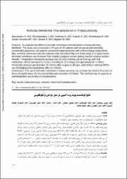 نتیجهگیری: پیونده پرده آمنیون در عمل جراحی ترابکولکتومی، روشی آسان، موثر و بیخطر است و میتواند به عنوان جایگزین مناسبی برای داروهای آنتیمتابولیت، به ویژه در کسانی که خطر استفاده از این داروها زیاد میباشد؛ درنظر گرفته شود.