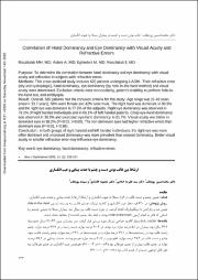 هدف: تعیین چشم و دست غالب در افراد مبتلا به عیوب انکساری و ارتباط آنها با حدت بینایی و شدت عیب انکساری.