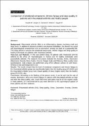 نتایج: میزان مؤلفههای هیجانی و خستگی مزمن در گروه آرتریت روماتوئید بهطور معنیداری بیشتر از گروه سالم (0/001