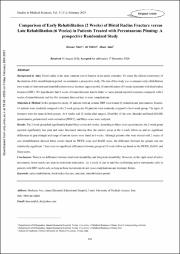 Background & Aims: Distal radius is the most common site of fracture in the upper extremity. To assess the clinical controversy of the duration of the immobilization period, we conducted a prospective study. The aim of this study was to compare early rehabilitation (two weeks of short-arm cast immobilization) versus the mean regular period of immobilization of 6 weeks in patients with distal radius fractures (DRF). We hypothesize that 2 weeks of immobilization lead to better or same patient-reported outcomes compared with 6 weeks of immobilization and that this treatment does not lead to more complications.