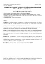 سابقه و هدف: برخوردهاي خودرو با شتر يکي از مشکلات ايمني جادههاي جنوب و شرق کشور ايران و غالباً مرگآفرين است. با توجه به فقدان مداخلات مؤثر، اين مطالعه باهدف شناسايي انتخاب مداخلات پيشگيرانه از بروز آسيبهاي ناشي از برخورد خودرو با شتر انجام شد.روش بررسي: در اين مطالعه با رويکرد تحليل محتوا و به روش مصاحبه و جلسه بحث گروهي، مداخلات پيشگيرانه، شناسايي و طبقهبندي گرديدند.نتايج: چالشهاي پيشگيري از برخورد خودرو با شتر در سهطبقه مشکلات شناسايي شترها، عدم مسئوليتپذيري ساربانان و ديده نشدن شترها توسط رانندگان در جاده و مداخلات پيشگيرانه نيز در دوطبقه مداخلات جادهاي و مداخلات فرهنگي اجتماعي شناسايي گرديد.نتيجهگيري: راهکارهاي پيشنهادي در مطالعه حاضر جهت پيشگيري از آسيبهاي حاصل از برخورد با شتر شامل ايجاد شرايط مناسب در جادهها و فرهنگسازي با وضع قوانيني براي کنترل و نظارت در کنار ارائه مشوقهاي لازم ميباشد؛ اما بدون مسئوليتپذيري مالکان، پيشگيري از چنين حوادثي يک چالش دائمي باقي خواهد ماند. How to cite this article:Hosseini SMR, Khorasani-Zavareh D, Abbasi A. Challenges and Strategies for Preventing Vehicle Collisions with Camels in South Khorasan Province: A Qualitative Study. J Saf Promot Inj Prev. 2018; 6(1):43 -8.