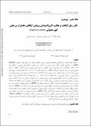 در مطالعه حاضر فعالیت آنتیاکسیدانی غلظتهای مختلف پروتئین آبکافتی حاصل از سر ماهی کپور معمولی (Cyprinus carpio) در زمانهای مختلف آبکافت مورد بررسی قرار گرفت. بدین منظور 8 قطعه کپور معمولی با میانگین وزن 034/0±766/0 کیلوگرم از بازار تهیه شدند، سپس آبکافت سر ماهی کپور معمولی با آنزیم آلکالاز با غلظت 1 درصد (حجمی/وزنی) در دمای 55 درجه سانتیگراد و pH 8 در زمانهای مختلف (30، 60، 120 و 180 دقیقه) انجام شد. نتایج آنالیز تقریبی نشان داد که در نتیجه آبکافت، درصد پروتئین (از 9/1±31/58 به 49/1±26/75 درصد) به طور معنیداری افزایش و مقدار چربی و خاکستر (بهترتیب از 87/0±46/16 به 97/0±37/2 و از 64/0±16/27 به 63/1±34/25 درصد) به طور معنیداری کاهش یافت (05/0p