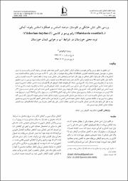 این تحقیق به منظور بررسی واکنش فتوسنتز و عملکرد اسانس گیاهان دارویی کاسنی توده محلی خوزستان و بابونه آلمانی رقم پرسو به تنش خشکی در شهرستان شوشتر (دانشکده کشاورزی دانشگاه آزاد اسلامی واحد شوشتر) در سال زراعی 90-89 به صورت دو آزمایش جداگانه انجام شد. آزمایشها در قالب طرح بلوک کامل تصادفی در چهار تکرار اجرا شد و تیمارهای تنش خشکی عبارت بودند از شاهد (حدود 90 درصد ظرفیت زراعی خاک)، تنش ملایم (حدود 75 درصد ظرفیت زراعی خاک) و تنش شدید (حدود 55 درصد ظرفیت زراعی خاک). صفات مورد بررسی در این تحقیق عبارت بود از ارتفاع بوته، وزن خشک برگ (کاسنی)، وزن خشک گل (بابونه)، غلظت کلروفیل a و b، فتوسنتز، درصد اسانس، عملکرد اسانس و اجزای تشکیل دهنده اسانس. نتایج آزمایش نشان داد تنش خشکی سبب کاهش فتوسنتز، غلظت کلروفیل a، وزن خشک و ارتفاع بوته بابونه و کاسنی شد اما درصد اسانس این گیاهان افزایش یافت. کمترین وزن خشک گل بابونه و وزن خشک اندام هوایی کاسنی تحت تاثیر تنش خشکی شدید به میزان 47 و 195 گرم بر متر مربع دیده شد در حالیکه بیشترین میزان عملکرد اسانس بابونه آلمانی (6/56 گرم در متر مربع) و کاسنی (9/225 گرم در مترمربع) تحت تاثیر تیمار تنش خشکی ملایم به دست آمد. در شرایط تنش خشکی ملایم بیشترین ترکیبات تشکیل دهنده اسانس بابونه کامازولن، آلفا پنین، آلفا بیسابول و بتا پنین بود در حالیکه بیشترین ترکیبات تشکیل دهنده اسانس کاسنی در شرایط تنش ملایم خشکی کامفور، آلفا پنین، بتا پنین و سابینین بود. به طور کلی نتایج نشان داد تنش خشکی ملایم به دلیل افزایش عملکرد اسانس علی رغم کاهش معنیدار وزن خشک اندام اقتصادی سبب افزایش عملکرد اسانس گیاهان مورد بررسی شد.