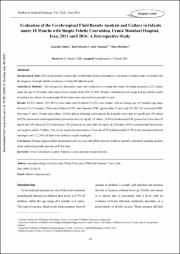 Results: Of 223 infants, 109 (48.8%) were male and 114 infants (51.2%) were female, with an average age of 9 months (age range between 5 to 15 months). Thirty-one of them (13.9%) had abnormal WBC (greater than 5/ mm3) and 192 (86.1%) had normal WBC (less than 5/ mm3). Twenty-four infants (10.8%) had an abnormal cerebrospinal fluid (protein more than 45 mg/dl) and 199 infants (89.2%) had normal cerebrospinal fluid (protein less than 45 mg/dl), 24 infants (10.8%) had abnormal CSF glucose level (less than 50 mg/dl) and 199 infants (89.2%) had normal CSF glucose level (more than 50 mg/dl). In 220 infants (99%), cerebrospinal fluid culture was negative and in 3 infants (1%), it was reported as unresponsive. Four out of 55 medical records (1.79%) were treated as bacterial meningitis and 5 (2.24%) of them were treated as aseptic meningitis.