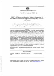 این مطالعه به مقایسه سه سوال ترکیبی بخش گفتاری آزمون تافل اینترنتی از نظر پیچیدگی، درستی، و روانی می پردازد. بدین منظور، گروهی از داوطلبان ایرانی آزمون تافل اینترنتی چند روز قبل از آزمون اصلی در یک آزمون شبیه ساز تافل شرکت کردند. پاسخهای شفاهی جمع آوری شده درابتدا به شکل نوشتاری درآورده شدند و سپس با استفاده از نرم افزارهایی از قبیل سیلاب شمار و "کومتریکس 3" به ترتیب از بعد روانی و پیچیدگی مورد سنجش قرار گرفتند. البته برای سنجش درستی کلام، پاسخها به صورت دستی تحلیل شدند. نتایج نشان داد که پاسخها به سه سوال گفتاری از بعد روانی به شکل معناداری با هم متفاوت بودند. از نظر شاخص درستی نیز تفاوت معناداری حاصل شد، البته مقایسه های دو به دو با نوساناتی همراه بود. در اتباط با شاخص های انتخاب شده برای پیچیدگی، تنوع واژگانی، میانگین تعداد توصیف کننده های ماقبل اسم، و تحلیل معنایی پنهان تفاوت های معناداری بین سوالات 2 و 3 از یک سو و سوال 4 از سوی دیگر نشان دادند. با این وجود، شاخص درونه شدگی ماقبل فعل هیچگونه تفاوت معناداری بین سه سوال نشان نداد. این نتایج می تواند بر نقش تاثیرگذار متون عامل در اینگونه سوالات ترکیبی سنجش گفتاری صحه بگذارد.