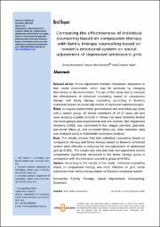 مقایسه اثر بخشی مشاوره فردی مبتنی بر شفقت درمانی با خانواده درمانی مبتنی بر نظام عاطفی بوئن بر سازگاری اجتماعی دختران افسرده نوجوان