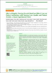 Background and Objective: Considering the importance of respecting the rights and satisfaction of patients, as well as the destructive role of anxiety in patients' recovery processes, the present study aimed to evaluate the effect of regular nursing rounds based on ethical care on the level of satisfaction and anxiety of hospitalized patients.