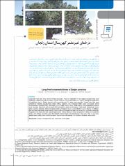 درختان کهنسال سرمایههای زنده طبیعت هستند. از این نظر، که شرایط متفاوت اقلیمی را پشت سر گذاشتهاند، دارای اهمیت هستند. این درختان گنجینه ژنتیکی طبیعت هستند. در راستای ثبت درختان کهنسال استان زنجان، تعداد 48 درخت مثمر و غیرمثمر کهنسال شناسایی شد. تعداد 21 درخت غیرمثمر از گونههای ارس، بید، بنه، بلوط، داغداغان، چنار، و سپیدار بودند. ویژگیهای قطر در ارتفاع سینه، ارتفاع کُل درخت، ارتفاع تنه، مساحت تاج پوشش، وضعیت سلامت، و موقعیت جغرافیایی هر یک از درختان از جمله مواردی بود که ثبت گردید. حداکثر قطر برای درخت چنار و حداقل آن برای درخت داغداغان ثبت شد. تعداد هفت پایه از نوع بنه، بید، داغداغان، و چنار به علت آسیبهای وارده نیاز به توجه جدّی دارند. علاوه بر این، تنها درخت سپیدار شناسایی شده ازجمله پایههای بومی استان است و به دلیل مالکیت خصوصی احتمال دارد قطع شود. درختان بلوط ثبت شده نیز فاقد هر گونه زادآوری هستند. درختان بید و چنار در مزارع و مناطق مسکونی قرار دارند و بدون استثنا از منابع آب دائمی بهرهمیبرند. تنها در یک مورد، شاخههای ریز درختان داغداغان را برای دفع بلا از فرزندان، احشام و ... قطع میکردند.