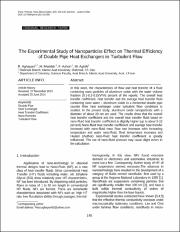 In this work, the characteristics of flow and heat transfer of a fluid containing nano particles of aluminum oxide with the water volume fraction (0.1-0.2-0.3)(V/V) percent of the reports. The overall heat transfer coefficient, heat transfer and the average heat transfer fluid containing nano water - aluminum oxide in a horizontal double pipe counter flow heat exchanger under turbulent flow conditions is studied. In the present study, aluminum oxide nanoparticles with a diameter of about 20 nm are used. The results show that the overall heat transfer coefficient and the overall heat transfer fluid based on nano-fluid heat transfer coefficient is slightly higher (up to about 5-12 percent).Nano-fluid heat transfer coefficient and average heat transfer increased with nano-fluid mass flow rate increases with increasing temperature and water nano-fluid, fluid temperature increases and Heated (Author) nano-fluid heat transfer coefficient is greatly influenced. The use of nano-fluid pressure may cause slight errors in the calculation.