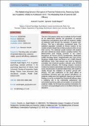 ارتباط میان ادراک از روابط والدین، سبکهای والدگری و سرزندگی تحصیلی در دختران نوجوان: نقش واسطهای خودکارآمدی عمومی