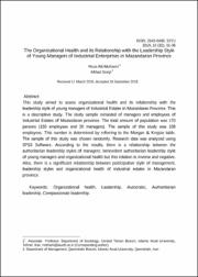 This study aimed to assess organizational health and its relationship with the leadership style of young managers of Industrial Estates in Mazandaran Province. This is a descriptive study. The study sample consisted of managers and employees of Industrial Estates of Mazandaran province. The total amount of population was 170 persons (150 employees and 20 managers). The sample of this study was 108 employees. This number is determined by referring to the Morgan & Krejcie table. The sample of this study was chosen randomly. Research data was analyzed using SPSS Software. According to the results, there is a relationship between the authoritarian leadership styles of managers; benevolent authoritarian leadership style of young managers and organizational health but this relation is inverse and negative. Also, there is a significant relationship between participative style of management, leadership styles and organizational health of industrial estates in Mazandaran province.