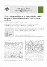 Nano silica phosphoric acid has been found to be a suitable catalyst for the preparation of 2,4,5-tri-substituted imidazoles via three-component reactions of benzil, aldehydes and ammonium acetate under sonication condition.