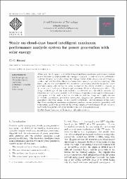 In the paper, a cloud-dust based intelligent maximum performance analysis system for power generation with solar energy is proposed. In order to resolve performance problems for power generation using solar energy, factors of the photovoltaic are integrated to the cloud-dust based intelligent maximum power analysis system for computing. This study concerns the development of a maximum performance analysis system for power generation using solar energy, in order to improve the e ects of di erent regions on the solar panels and enable them to get maximum e ciency of power generation. The design methodology of this study includes: (1) Records and surveillance module; (2) Prediction and assessment module; (3) Performance diagnosis module; and (4) Maintenance prescription module, with which we are able to nd the design and implementation of records, surveillance, prediction, assessment, diagnosis and prescription for power generation with solar energy. It has worked successfully. The advantages of the clouddust based intelligent, maximum performance analysis system for power generation with solar energy include an increase in the overall competitive performance of the products, and a reduction in the cost of the products and use of human resources