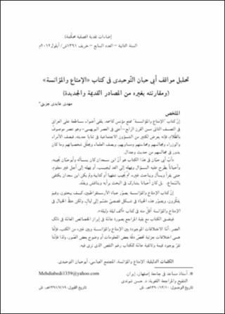 تحلیل مواقف أبی حیان التّوحیدی فی کتاب "الإمتاع والمؤانسة" (ومقارنته بغیره من المصادر القدیمة والجدیدة)