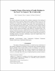 The article is devoted to the study of the evaluative component of the meaning of lexical means used to describe relations between family members in the novel “In Chancery" by J. Galsworthy. The relevance of t &he study can be attributed to the lack of works devoted to this problem. As the results of our study demonstrate, the words of the lexical-semantic group “family" were mainly used to verbalize relations between members of the Forsytes family. The paper analyzes the attitude towards marriage, spouses, parents and children in the studied text. Scientific novelty of the work is the study of the ways to implement the occasional evaluative component of meaning of the aforementioned words in the text of a work of fiction. The relevance of this paper is explained by the lack of studied, which examine the lexical means of describing relations in the family, embodying a typical rich English family of the second half of the 19th century.