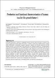 Insulin-like growth factor 1 (IGF-1) is a polypeptide hormone produced mainly by the liver in response to the endocrine growth hormone (GH) stimulus. This protein is involved in a wide range of cellular functions, including cellular differentiation, transformation, apoptosis suppression, migration and cell-cycle progression and other metabolic processes. In the current study, human heart cDNA was employed to isolate IGF-1 encoding fragment using reverse transcriptase (RT) PCR. The isolated fragment was cloned into pET32a expression vector and then transformed into the competent Escherichia coli Origami 2. After selecting the correct colony with the highest expression level, the colony was cultured and induced with IPTG. Recombinant IGF-1 expression was detected by SDS-PAGE and His-tagged protein purification was performed with the affinity chromatography. In order to confirm the activity of the resultant protein, biological activity of the recombinant IGF-1 was assayed through inducing proliferation of MCF-7 cells. Molecular techniques, including PCR, restriction digestion, mass spectrometry analyses, SDS-PAGE and biological activity analyses of this protein confirmed the correct cloning, expression, and function of IGF-1 in this study. Overall, we provided a rapid and cost effective production and purification method for IGF-1 protein, which is biologically active and functional.