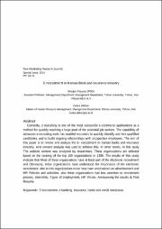 Currently, e-recruiting is one of the most successful e-commerce applications as a method for quickly reaching a large pool of the potential job seekers. The capability of advanced e-recruiting tools has enabled recruiters to quickly identify and hire qualified candidates, and to build ongoing relationships with prospective employees. The aim of this paper is to review and analyze the E- recruitment in Iranian banks and insurance industry. And content analysis was used to achieve this. In other words, in this study The website content was analyzed by researchers. These organizations are selected based on the ranking of the top 100 organizations in 1390. The results of this study indicate that Most of these organizations have at least part of the electronic recruitment and Obviously, these organizations have understood the importance of the electronic recruitment. also in this organizations more have been emphasized on advertisement and HR Policies and activities. also these organizations had less attention to recruitment process, internship, Types of employment, HR Vision, Announcing the results & Post Resume.