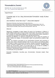 Objective(s):Investigation of phase diagram of various drug formulations is effective to predict different phase region of drugs to detect final formula. The purpose of this research was to develop the ternary phase diagrams for a drug microemulsion system consisting of Cucurbita pepo (pumpkin) oil, surfactant (Tween 80) and deionized water. Materials and Methods:An electrical conductivity was used to study the properties of system. Particle size analysis of microemulsion system was performed by dynamic light scattering. Results:The electrical conductivity of the microemulsions increases with increasing of aqueous phase content. Structural transitions from the oil-in-water to a bi-continuous phase then inversion to water-in-oil occured in the system. Diameter of particles was calculated 70 nm (for 75 percent of particles) and 35 nm (for 25 percent of particles). Solubility results showed that microemulsion system of Cucurbita pepo oil can increase its solubility in aqueous medium due to droplet size reduction into nanometer size. Conclusion:Microemulsion technique can be used as a successful method in preparation of Cucurbita pepo oil drug formulation.