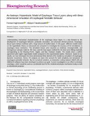 Understanding mechanical characterization of the esophagus tissue layers is a step forward to the development of esophageal behavior, peristaltic simulation, and advanced clinical practices. Esophagus tissue layers behave nonlinear with a large amount of malformation. In this paper, different models based on the hyperelastic theory are discussed and compared to investigate the accuracy of the simulations in esophagus tissue mechanics. The simulated tissues were assumed as nonlinear, incompressible, and homogenous isotropic material. We have used the least square method for the best curve-fitting materials corresponding to the Mooney-Rivlin, Ogden, and Neo Hookean models. The results show a perfect agreement with Ogden hyperelastic model compared to the experimental studies. Moreover, based on our results, we have developed the three-dimensional finite element (FE) models by simulation of esophageal dynamic movements. Hence, FE analyses are taken into account for both simplicity and simulation of esophageal peristaltic behavior. By the numerical solutions, an interactive coding between MATLAB and ABAQUS software have been developed to achieve our goal. Current investigation is an effort to simulate esophagus, which would be used as a predictable tool for the medical and physio-mechanical study as well as educational purposes.