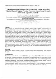 One of reasons that researchers in recent years have tried to produce ultrafine grained materials is producing lightweight components with high strength and reliability. There are disparate methods for production of ultra-fine grain materials,one of which is severe plastic deformation method. Severe plastic deformation method comprises different processes, one of which is Parallel tubular channel angular pressing. The aim of this study is optimizing parameters of the noticed process die just by utilizing neural network and genetic algorithm methods that at first for this purpose, by using ABAQUS finite element software, the numerical analysis of the die parameters is performed and the impact of each die parameter on the force of the process and the equivalent strain is examined. Finally, for gaining optimal parameters, MATLAB and neural network optimization methods and genetic algorithm are used. The use of neural network and genetic algorithm illustrated that to achieve the ideal possible situation in order to achieve a flawless super-fine tube, it is imperative to use the friction coefficient of 0.05, tube length of 40 mm, channel angle of 140 degrees and diameter increase difference of 1.5 mm. With such values, strain fluctuations reach 0.23, lowest value, and also the force reaches 0.49 KN and the amount of applied strain reaches its highest value to 2.37.