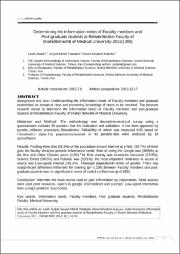 بررسی نیازهای اطلاعاتی اعضای هیئت علمی و دانشجویان تحصیلات تکمیلی دانشکده توانبخشی دانشگاه علوم پزشکی شهید بهشتی 1390