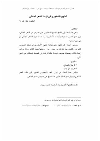 يسعى هذا البحث إلى تطبيق المنهج الأسطوري على نصوص من الشعر الجاهلي، تبرز عمق الصور الشعرية، وأبعادها الأسطورية، وما صاغه خيال الشاعر الجاهلي من بنى لغوية جمالية.