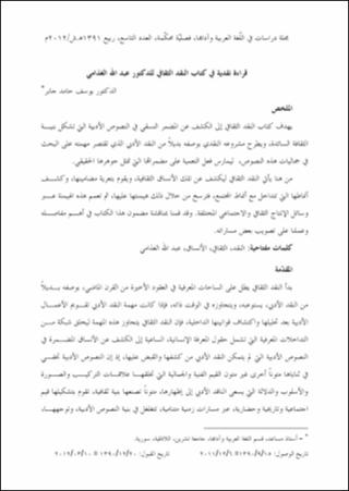 قراءة نقدية في كتاب النقد الثقافي للدكتور عبد الله الغذامي