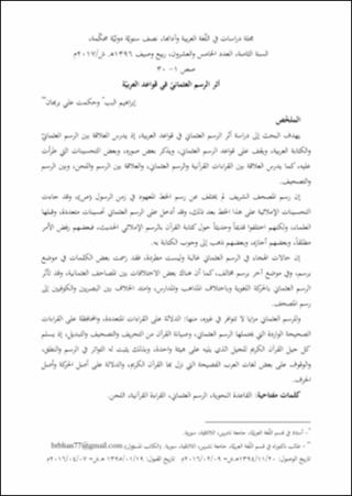 يهدف البحث إلى دراسة أثر الرسم العثماني في قواعد العربية، إذ يدرس العلاقة بين الرسم العثمانيّ والكتابة العربية، ويقف على قواعد الرسم العثماني، ويذكر بعض صوره، وبعض التحسينات التي طرأت عليه، كما يدرس العلاقة بين القراءات القرآنية والرسم العثماني، والعلاقة بين الرسم واللحن، وبين الرسم والتصحيف. إن رسم المصحف الشريف لم يختلف عن رسم الخط المعهود في زمن الرسول (ص)، وقد جاءت التحسينات الإملائية على هذا الخط بعد ذلك، وقد أدخل على الرسم العثماني تحسينات متعددة، وقبلها العلماء، ولكنهم اختلفوا قديماً وحديثاً حول كتابة القرآن بالرسم الإملائي الحديث، فبعضهم رفض الأمر مطلقاً، وبعضهم أجازه، وبعضهم ذهب إلى وجوب الكتابة به. إن حالات الهجاء في الرسم العثماني غالبة وليست مطردة، فقد رسمت بعض الكلمات في موضع برسم، وفي موضع آخر برسم مخالف، كما أن هناك بعض الاختلافات بين المصاحف العثمانية، وقد تأثر الرسم العثماني بالحركة اللغوية وباختلاف المذاهب والمدارس، وامتد الخلاف بين البصريين والكوفيين إلى رسم المصحف. وللرسم العثماني مزايا لا تتوافر في غيره، منها: الدلالة على القراءات المتعددة، والمحافظة على القراءات الصحيحة الواردة التي يحتملها الرسم العثماني، وصيانة القرآن من التحريف والتصحيف والتبديل، إذ يسلم كل جيل القرآن الكريم للجيل الذي يليه على هيئة واحدة، وبذلك يثبت له التواتر في الرسم والنطق، والوقوف على بعض لغات العرب الفصيحة التي نزل بها القرآن الكريم، والدلالة على أصل الحركة وأصل الحرف.