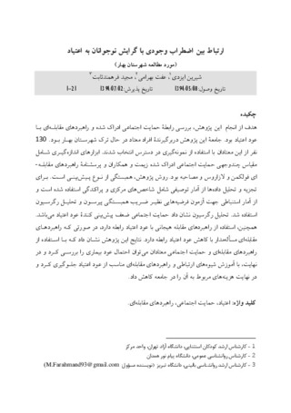 ارتباط بین اضطراب وجودی با گرایش نوجوانان به اعتیاد (مورد مطالعه شهرستان بهار)