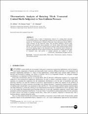 Thermoelastic Analysis of Rotating Thick Truncated Conical Shells Subjected to Non-Uniform Pressure