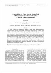 In order to assess the presence or absence of fluids under peak metamorphic conditions within the inner aureole of the Etive igneous complex in west Scotland, eight suitable metabasic hornfels samples and one suitable pelitic hornfels were used to calculate water activities using a mineral equilibria. Calculated activities for water are lower than unity in the pelitic sample and extremely low in the metabasic rocks. These low H2O activities due to dilution of water by other fluid species are unlikely, since no mineralogical evidence for the presence of other fluids were found in the studied rocks. As a consequence, the low H2O activities support fluid-absent conditions during the peak metamorphism of the inner aureole rocks. The findings from this study are in good agreement with calculated water activities using water contents of cordierite in the pelitic rocks for the same part of the aureole, suggesting that cordierite in metapelites retained its syn-metamorphic volatiles.