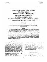 LEWIS BASE ADDUCTS OF LEAD(I1) COMPOUNDS 111* SYNTHESIS AND STRUCTURAL CHARACTERIZATION OF LPb(C10,), AND LPb(NCS),, (L= MESO-5,7,7,12,14, 14-HEXAMETHYL- 1,4,8,11- TETRA-AZACY COTETRADECANE)