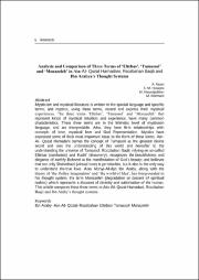 عرفان و ادبیات عرفانی در قالب زبان و اصطلاحات ویژهای تجلی یافته است. عارفان با بهرهگیری از این زبان، تجربهها و مکاشفات عرفانی خود را ثبت و بیان کردهاند. سه اصطلاح التباس و تمثّل و منازله با ویژگیهای مشترک بسیار، بیانکنندۀ گونههایی از تجربۀ رؤیت و کشف و شهود عرفانیاند. این سه اصطلاح تأویلپذیرند و در سطح رمزی یا محاکاتی زبان عرفان قرار میگیرند؛ و پیوند محکمی با مفاهیم محبت و عشق و تجلی الهی دارند. عارفان برخی از مهمترین اندیشههای خود را در قالب این اصطلاحات بیان کردهاند. عینالقضات همدانی مفهوم تمثّل را اسرار بزرگ الهی میخواند و دریافتن عوالم دنیا و آخرت را به درک عالم تمثّل وابسته میداند. روزبهان بقلی با تکیه بر اصطلاح التباس و کشف، حُسن و جمال معشوق زمینی را تجلی جمال حق به شمار میآورد و شاهدبازی و عشق مجازی را جایز و حتی آن را تنها راه درک عشق حقیقی معرفی میکند. ابنعربی نیز در بیان نظریۀ حضرت خیال و عالم مثال، اصطلاح منازله را در نظام فکری وحدتگرایانۀ خود برجسته میکند. این اصطلاح بیانگر گونهای تنزل یا فرود عوالم روحانی و تعالی انسان برای دستیابی به آن عوالم است. این مقاله بهطور مقایسهای این سه اصطلاح را در نظام فکری عینالقضات همدانی و روزبهان بقلی و محیالدین بنعربی بررسی میکند.