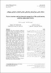 Introduction: The current investigation evaluated the psychometric properties and confirmed factor structure stability of the Social Anxiety Scale for Adolescents (SASA) in a sample of Iranian adolescents.Method: The Persian version of the SASA and the Questionnaire about Interpersonal Difficulties for Adolescents, the Fear of Negative Evaluation Scale-Brief Version, and the Big Five Inventory were administered to a sample of 500 adolescents (276 females and 224 males). Confirmatory factor analysis (CFA), convergent validity, and internal consistency were used to compute the factor structure, validity, and reliability of the SASA, respectively.Results: Both alpha coefficient and test-retest correlations indicated high reliability for the forms of the SASA. The results of principle component analysis (PCA) and oblique rotation replicated the two-factor structure of the SASA. The results of a CFA revealed that while one factor model in the SASA had an acceptable fit to the data, the two factor model consisted of apprehension and fear of negative evaluation. Tension and inhibition of social contact demonstrated a superior fit. The significant positive correlation between the forms and SASA total score with subscales, the FNES-B total score with subscales, the QIDA total score and neuroticism, as well as the significant negative correlation with extraversion extended empirical support for the convergent validity of the SASA.Conclusion: These findings speak to the robustness of the SASA and reveal its relatively stable structure, and, consequently, its potential usefulness as a valid measure of social anxiety for Iranian adolescents.