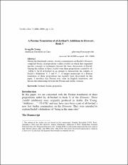 در سده سوم هجری/نهم میلادی، برخی شارحین اقلیدس گزارههایی را بیان کردند (که آنها را زیادات مینامند) و در آنها مفاهیم یا تکنیکهای خاصی آمده که از مباحث اقلیدس برمیآید. یکی از نخستین [نمونههای] زیادات، سه گزارهای است که عباس بن سعید جوهری برای اثبات تعاریف پنجم و هفتم از مقال? پنجم اصول بیان کرده است. نسخه منحصر به فردی از ترجم? فارسی این سه گزاره اخیراً پیدا شده است. در این مقاله، من به معرفی این متن فارسی، ترجمه انگلیسی آن و بررسی ارتباط آن با اصل عربی خواهم پرداخت.