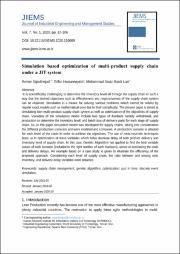 It is scientifically challenging to determine the inventory level all through the supply chain in such a way that the desired objectives such as effectiveness and responsiveness of the supply chain system can be obtained. Simulation is a means for solving various problems which cannot be solved by regular exact models such as mathematical ones due to their complexity. The present paper is aimed at simulating lean multi-product supply chain system as well as optimization of the objectives of supply chain. Variables of the simulation model include two types of Kanbans namely withdrawal, and production to determine the inventory level, and batch size of delivery parts for each stage of supply chain. So, in this paper simulation model was developed for supply chains, taking into consideration the different production scenarios and were modeled and compared. A production scenario is adopted for each level of the chain in order to achieve the objectives. The use of meta-heuristic techniques leads us to optimization of these variables which helps decrease delay of both product delivery and inventory level of supply chain. In this case, Genetic Algorithm has applied to find the best variable values of each scenario (included in the right number of each Kanbans), aimed at decreasing the costs and delivery delays. An example based on a case study is given to illustrate the efficiency of the proposed approach. Considering each level of supply chain, the ratio between and among cost, inventory, and delivery delay variables were obtained.