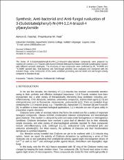 The Series of 3-(Substitutedphenyl)-N-(4H-1,2,4-triazol-4-yl)acrylamide compounds were prepared byreaction of 4-amino-1,2,4-Triazole with Acetyl Chloride followed by Claisen-Schmidt Condensation reactionwith different aromatic aldehydes. The structures of new compounds were confirmed by IR, 1H-NMR and13C-NMR spectral data. Anti-bacterial and Anti-fungal activities were evaluated and compared with thestandard drugs, some compounds of the series exhibited promising anti-microbial and anti-fungal activitycompared to standard drugs.