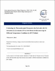In thisresearch, the formed reaction derivative of matter [b-5,1] Tetrazolo [4,2,1] Teriazine (TTA) with boron nitride cage Nano-structure was studied in different temperature conditions by DFT method. For this purpose, first, the materials on both sides of the reaction were the geometric optimization, then, calculation related to the thermodynamic parameters were done on all them. Then, the values of ∆S, ∆H and ∆G of this reaction at different temperatures are obtained by the difference in the sum of these parameters in the products to the primary materials and in the final, the best temperature for the synthesis of the explosive material derivative was evaluated according to the resulting thermodynamic parameters