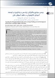 AbstractIntroduction: Presenting the existing challenges in e-learning is necessary for increasing concentration, suitable prediction and investment, preparation of effective programs in the learning system. We aimed to assess the pedagogical challenges (instructing and learning) in the development of e-learning in the educational system of Shahid Chamran University of Ahwaz.Material and methods: In this qualitative and quantitative study, 163 faculty members from the mentioned university were selected using the random sampling method. Data were collected through interviews and with the help of questionnaires prepared by the researcher. The questionnaire's reliability (0.92) and validity were confirmed by related experts. Descriptive and inferential statistics were used as appropriated.Results: We found that evaluation, resource management, program management, communication tools, learner-based education, and flexibility were significantly effective on pedagogical (instructing and learning) challenges in the e-learning program at Shahid Chamran University. The mean values for the mentioned factors were 3.70, 3.69, 3.56, 3.43, 3.37, and 3.20, respectively.Conclusion: A combination of the mentioned factors shown to be effective on e-learning for higher education.