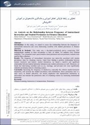 Introduction: In this study, had analysis the relationship between frequency of instructional Communication and six kinds of its and some intervening variables with student persistence in Distance education.